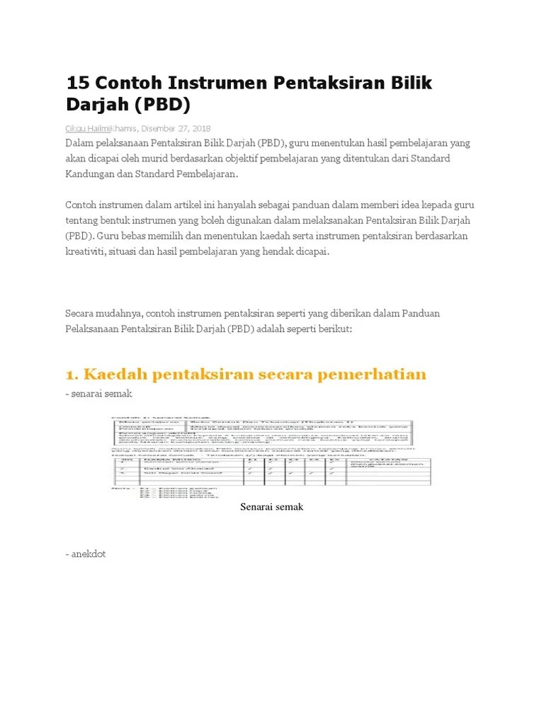 Dalam pelaksanaan pentaksiran bilik darjah (pbd), guru menentukan hasil pembelajaran yang akan dicapai oleh murid berdasarkan objektif pembelajaran yang . Mungkin imej teks yang berkata 'banyak idea kerja dari rumah yang boleh . Contoh instrumen pbd, dalam pelaksanaan pentaksiran bilik darjah (pbd), guru menentukan hasil pembelajaran yang akan dicapai oleh murid .